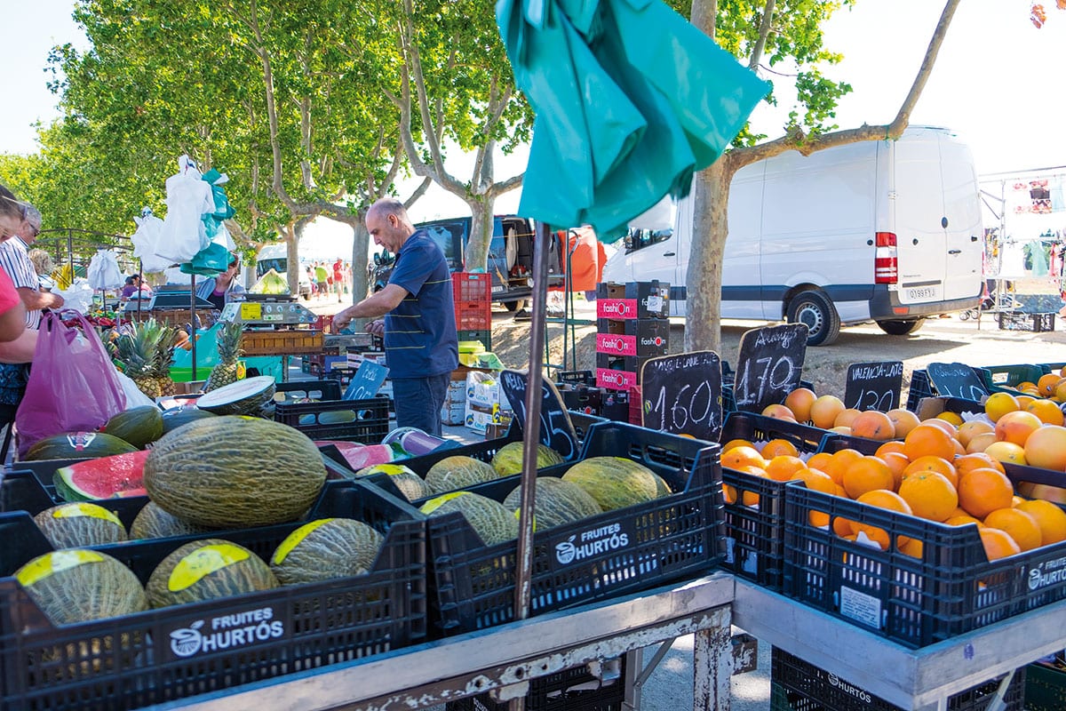 - Wochenmarkt in Sant Pere Pescador – Obststand