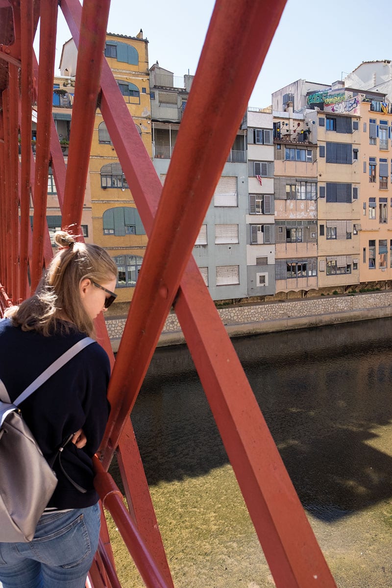 Nach unserer kleinen Pause gehen wir an der Plaça de la Independència vorbei und über die Pont d’en Gómez, meiner Meinung nach die schönste Brücke Gironas.
