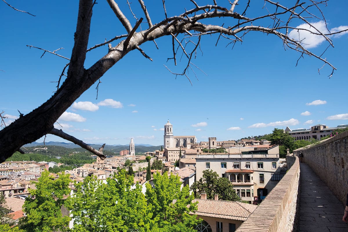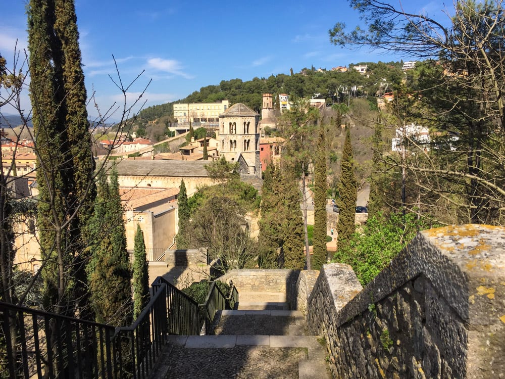 Zurück an unserem Ausgangspunkt bei der Löwenstatue angelangt, wollen wir noch einen Teil der Stadtmauer erkunden. Oben angelangt erwartet uns wieder eine Bank in der Sonne. Von hier aus genießen wir den Ausblick auf weitere Sehenswürdigkeiten wie z.B. auf die Basílica Sant Feliu, auf die Kathedrale, die Església de Sant Nicolau, das Kloster von Sant Pere de Galligants und die vielen kleine Gärten und Parks dazwischen. In Girona wird einem bestimmt nie langweilig, versteckt sich hinter den diversen Treppenaufgängen durch die engen Gassen doch so manch eine Überraschung.