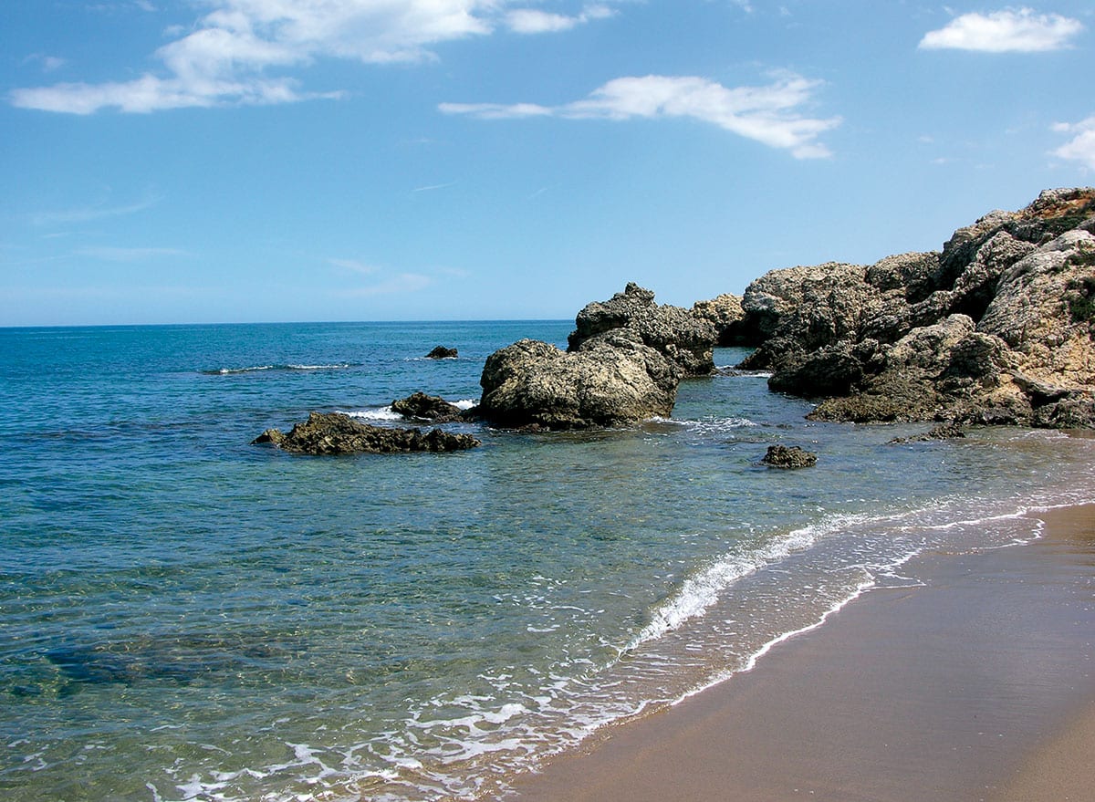 Wir fahren vorbei am Fischerhafen entlang bizarrer Felsen zur Cala Montgó. Schöne Villen thronen oben auf den Klippen. Ab und an steht so eine Topimmobilie bei dem Immobilienbüro Selected Property zum Verkauf. Allerdings muss man für so eine Gelegenheit schon tief in die Tasche greifen. Objekte unter einer Million Euro sind in der Bucht Montgó erst in zweiter oder dritter Meerlinie zu haben.