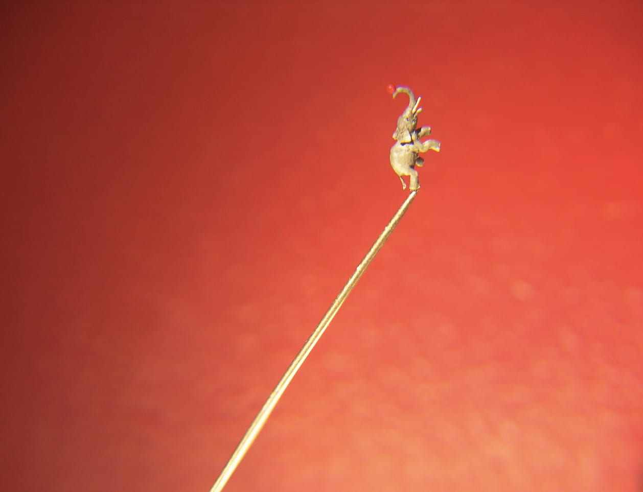 Lluís Carreras erzählt uns Geschichten zu seinen Ausstellungsstücken. Seine Augen leuchten. Die Begeisterung springt über. In uns erwachen Kinderträume. Einige Miniaturen sind 100.000 mal kleiner als das Original. Ihre Fertigung verlangt äußerste Präzision und eine ruhige Hand bei angehaltenem Atem. Lluís Carreras weiß diese Talente als Goldschmied sehr zu schätzen: „Auch ein Juwelier fertigt schließlich kunstvolle Skulpturen en miniature.“