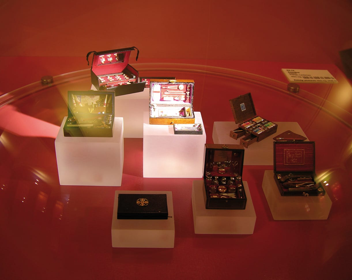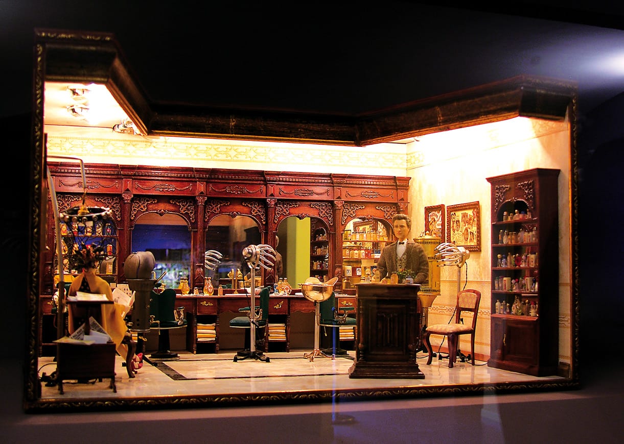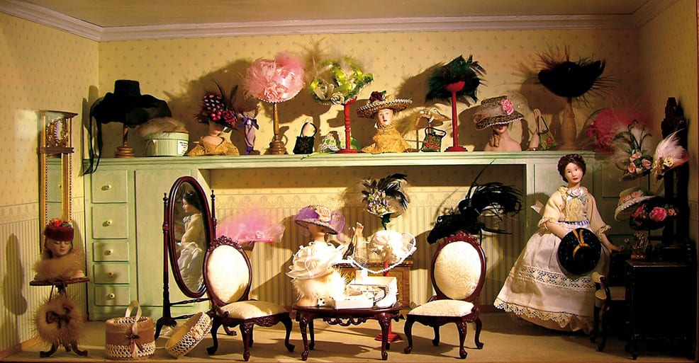Dann entzückt uns ein antikes Dessousgeschäft in Puppenstubenformat mit exklusiver Ware und ein Hutsalon en miniature erzählt von der Mode und Kunstfertigkeit vergangener Tage… Alles ist wie das Original, nur eben sehr viel kleiner: aufwändige Schnitzereien, Gemälde an den Wänden, Leuchter, Figuren, Schmuck und Edelsteine.