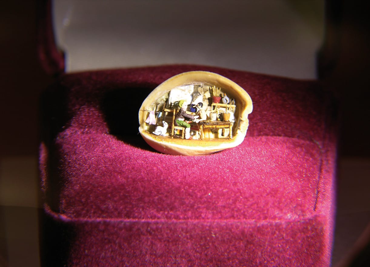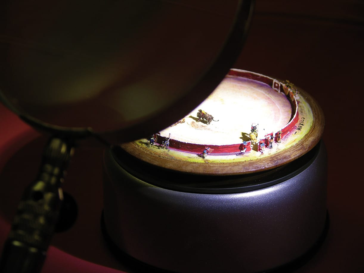 Der Juwelier Lluís Carreras verschrieb sich schon vor 50 Jahren seiner Passion „Miniatur“. Im Laufe der Zeit trug er über 2000 Stücke zusammen. Wir nehmen eine 6 mm kleine Kopie des Eifelturms unter die Lupe, in einer Vitrine balanciert ein Elefant auf einer Nadelspitze, in der nächsten wandert eine Kamelkarawane durch das Nadelöhr. Was mit bloßem Auge nicht erkennbar ist, macht erst das Vergrößerungsglas sichtbar. Respekt vor der Fingerfertigkeit des Künstlers!